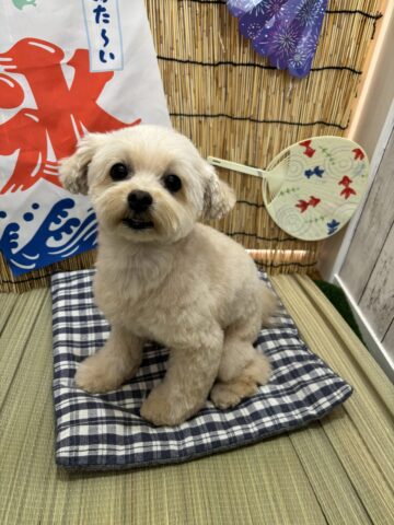トリミングランちゃんまたカットに来てくれました💖短くなってスッキリしました👌今日はカットに来てくれました💕カメラ目線でバッチリです✨暑い中来ていただきありがとうございました。またのお越しお待ちしております。