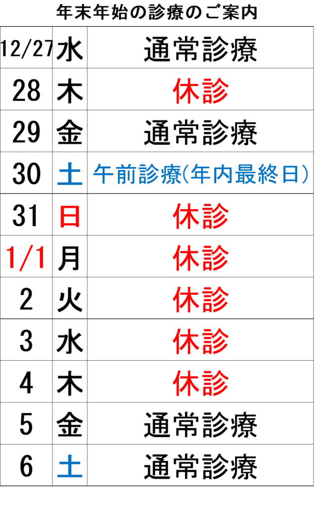 【年末年始】診療のおしらせ